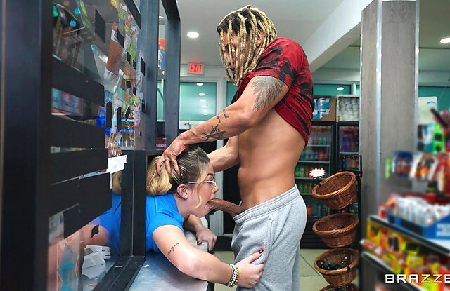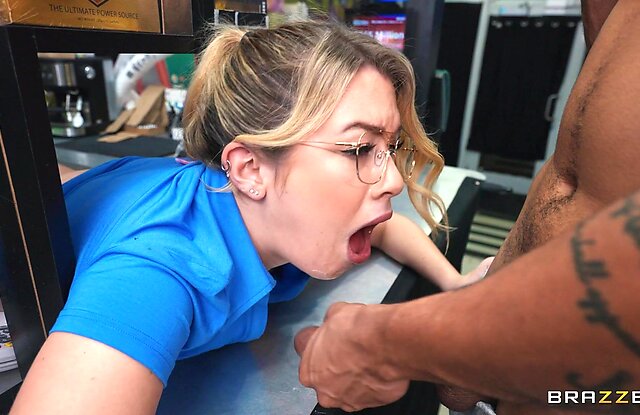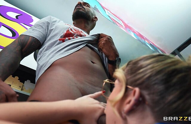 Порно онлайн: Нимфоманка Ashley Alexander встречает своих покупателей горячим минетом и трахом. Сегодня девушка встретила лахматого покупателя сразу с открытым ртом и тот принялся трахать её прям через прилавок. В этот момент её коллега негр, имел её сзади. Такое вот славное МЖМ прямо во время рабочего дня.