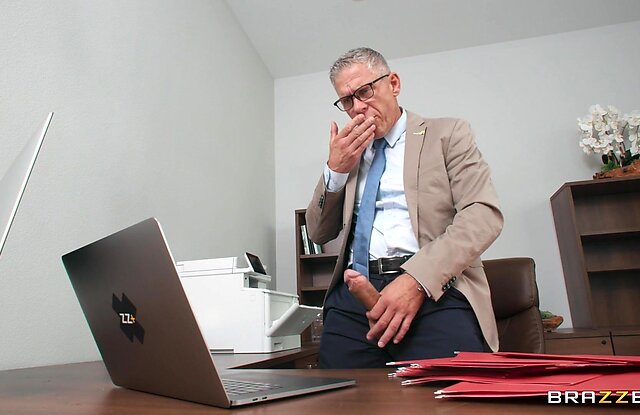 Порно онлайн: Cory Chase и её подчиненный дрочили на одну и ту же порнуху в разных кабинета. Но затем мужик пошел отдать начальнице отчет и там застукал её за мастурбацией. Кори, быстренько поставила его на колени и заставила лизать свою жопу. Поработав языком он достал свой член и выебал начальницу словно дешевую шлюху.