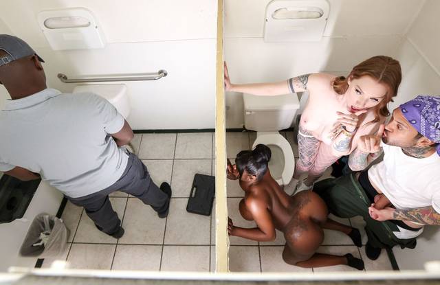 Парень застукал лесбиянок и устроил ЖМЖ секс в туалете