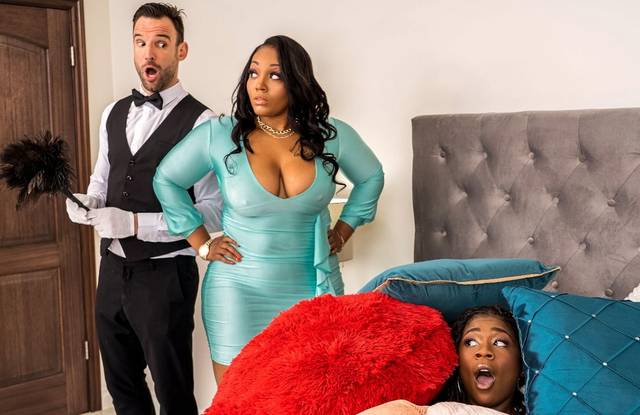 Brazzers - Две темнокожие девицы с большими жопами трахаются с официантом